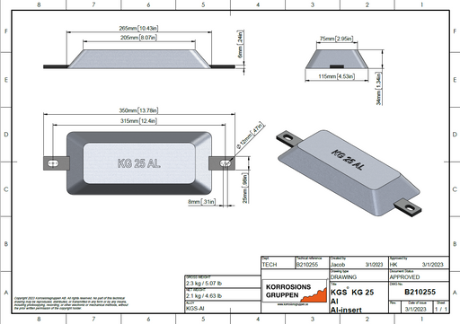 Aluminumanod KGS © 0.4kg Net, 59463 Rev A Mainted